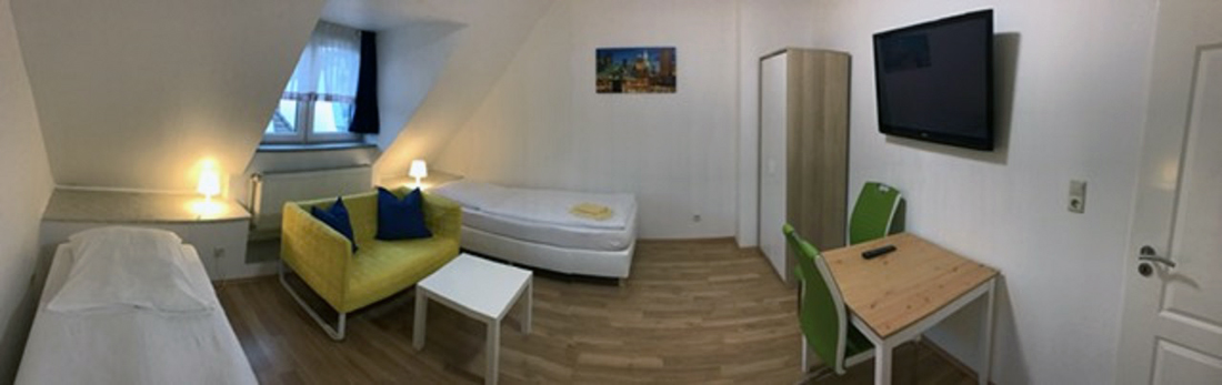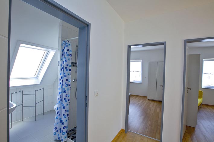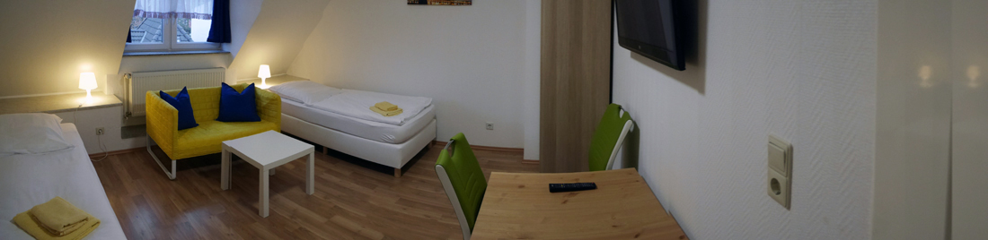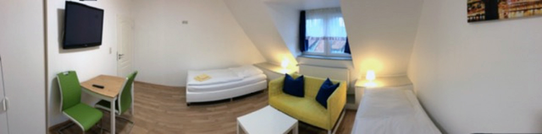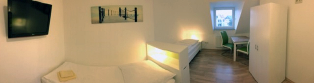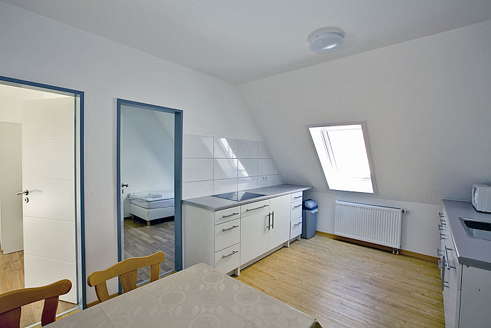 Alle Wohnungen für 2 bis 4 Personen sind 2016 komplett neu ausgestattet worden.Sie verfügen über ein oder zwei Wohn/Schlafräume mit Flachbildfernsehern, Flur, Dusche/WC. Ebenfalls einer gut ausgestatteten Küche mit einer Mikrowelle, einem Kühlschrank, Toaster, Kaffeemaschine und Wasserkocher. Ein Minibackofen kann gegen geringe Gebühr direkt vor Ort dazugebucht werden. Einiege unserer Wohnungen verfügen über einen bzw. 2 Balkone die zum Verweilen einladen.
